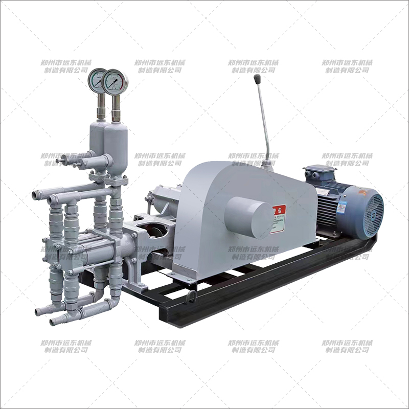雙液變量注漿泵主要用于軟基加固,隧道預注漿,堵水及破碎巖石的固結(jié)注漿工程。 SYB-140/6型雙液變量注漿泵為臥式雙作用往復式活塞泵,該泵為雙進雙出泵,有兩個吸漿口,兩個排漿口,可進行雙液注漿作業(yè),出漿比例1:1,注漿速度由變速箱控制分4種速度,對應不同的出漿排量,由于該泵兩缸同時輸出漿液,通過混合器,混合可達到較準確的混合比例,對漿液的凝膠時間更容易控制,從而能有效地掌握漿液的擴散半徑,進而提高注漿工程的質(zhì)量,降低注漿工程的成本。 1.雙缸雙液注漿泵的壓力高,流量大。 2.雙缸雙液注漿泵可任意比例注兩種漿液。 4.雙缸雙液注漿泵采用液壓機械換向,無復雜電器元件,基本無易損件,操作方便,動作可靠。 5.雙缸雙液注漿泵現(xiàn)場操作人員即可熟練操作,方便維護和維修。